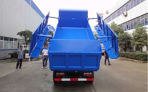 2.掛桶式自裝卸垃圾車:采用鏈條和液壓油缸聯(lián)動裝置,實現(xiàn)自動對垃圾提升和翻轉(zhuǎn)裝料,將多處垃圾桶內(nèi)的垃圾自動收入車廂,運輸并具有自卸功能。掛桶式垃圾車也可以一臺車配多個垃圾桶(鐵桶或朔料桶,)聯(lián)合作業(yè),這款垃圾車適用于垃圾量不太大,收運垃圾范圍較廣的小區(qū),學(xué)校,景區(qū),工廠等,對于垃圾量比較小的環(huán)道環(huán)衛(wèi)也可以選擇這款垃圾車。