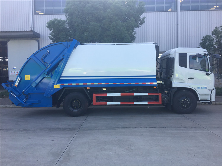 1:效率高,壓縮式垃圾車由底盤、箱體、料斗、刮板、推板、油缸、多路閥、油泵、PLC等組成,垃圾是由后翻轉(zhuǎn)機(jī)構(gòu)把垃圾桶舉升倒入料斗,再由刮板將垃圾刮入垃圾箱內(nèi),翻轉(zhuǎn)機(jī)構(gòu)可同時(shí)裝2個(gè)240升國標(biāo)垃圾桶,完成 一次垃圾裝入的時(shí)間大約是15秒,一個(gè)勞動(dòng)力完全可操控一臺(tái)車子垃圾的裝卸料,大大節(jié)省人力