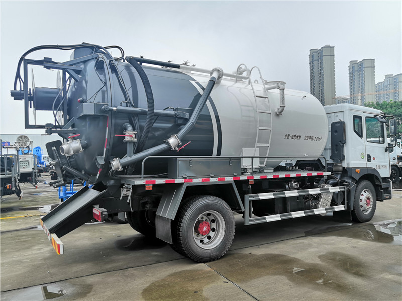 清洗吸污(糞)車專用裝置配置:德國(guó)高壓泵(16mpa)/ 雙耀高壓泵(24 mpa) ,億豐/偉業(yè)/威龍等吸污(吸糞)車專用真空泵,常規(guī)配備10個(gè)高壓沖頭,具有自動(dòng)回位功能的收放卷盤,60米長(zhǎng)的高壓管(可根據(jù)需要加長(zhǎng)) ,帶工具箱,加粗型污水位顯示管、清水位顯示管,方便操作人員掌握罐內(nèi)污水、清水的水量,人性化地加裝了防溢閥防止吸污時(shí)罐內(nèi)污水裝滿后進(jìn)入到抽排真空的管道中對(duì)真空泵的損壞,管道回路由水氣分離器、油氣分離器、四通換向閥、真空泵、管道等組成,吸污(糞)罐尾部有自流口、后蓋液壓開啟鎖緊裝置更能有效地保證罐體的密封性,排污方式可通過(guò)自流口排放或打開后蓋排放,罐體的自卸功能可使排污更快更干凈。