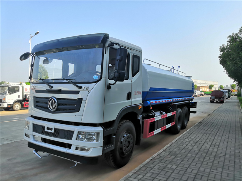 東風T5后八輪灑水車:罐體可做19至25方,軸距4350+1300mm,采用東風T5后雙橋底盤,新款歐系加寬車身,液壓翻轉駕駛室,可選擇康明斯210馬力/245馬力,玉柴240馬力/270馬力等國五發(fā)動機,法士特八檔或九檔變速箱,前橋5噸,10噸雙后橋,11.00R20原廠鋼絲胎,原廠ABS,帶方向助力,離合助力器,氣剎制動,電動玻璃,空調,減震座椅等。