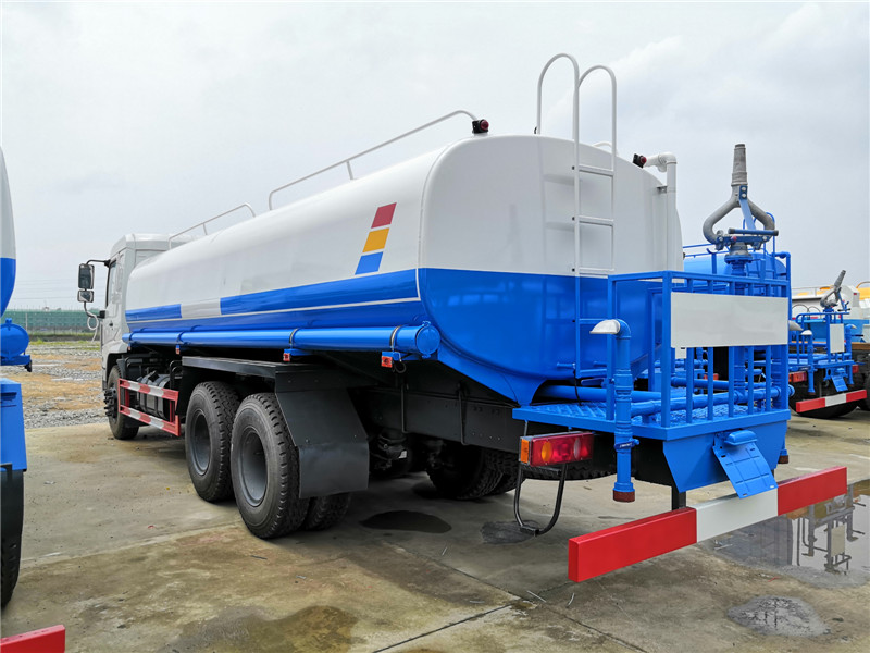 灑水車上裝配置:罐體材質為厚4mm(可選5mm)武鋼優(yōu)質板材,配億豐或威龍大功率灑水車專用水泵,可自吸自排,水泵垂直吸程≧7米,抽滿一罐水時間:10分鐘左右。其它標配為:前沖、后灑、側噴、后工作平臺帶360度可調節(jié)綠化水炮,自流閥、濾網(wǎng)、消防接口(可連接消防栓取水,可作應急消防用),罐前量管(觀察罐內水位)、罐后爬梯、罐口、帶簡易護欄、罐側雙炮筒、炮筒內3米長鋼絲塑膠抽水管兩根,罐體表面雙層油漆工藝,防銹、耐腐蝕,其余由廠家標配。