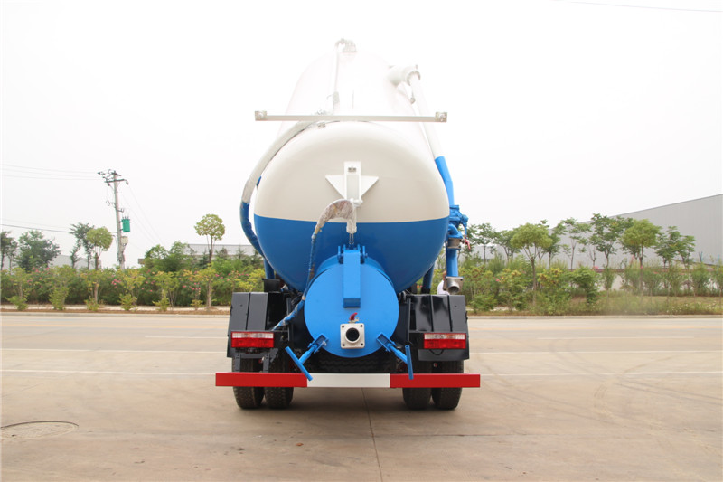 吸污車專用部分由取力器、傳動軸、真空吸污泵、壓力罐體、液壓部分,管網系統(tǒng)、真空壓力表、視糞窗、洗手裝置等組成,隨車配置大功率真空吸污泵和優(yōu)質液壓系統(tǒng),罐體封頭一次壓鑄成型、罐體可后開、雙頂自卸。罐內污物可通過后蓋直接傾倒,具有真空度高(比吸糞車的吸力更大)、噸位大、效率高、用途更廣泛的特點。
