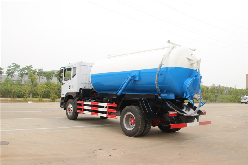 東風12方D9吸污車專用部分由取力器、傳動軸、真空吸污泵、壓力罐體、液壓部分,管網系統(tǒng)、真空壓力表、視糞窗、洗手裝置等組成,隨車配置大功率真空吸污泵和優(yōu)質液壓系統(tǒng),罐體封頭一次壓鑄成型、罐體可后開、雙頂自卸。罐內污物可通過后蓋直接傾倒,具有真空度高(比吸糞車的吸力更大)、噸位大、效率高、用途更廣泛的特點。