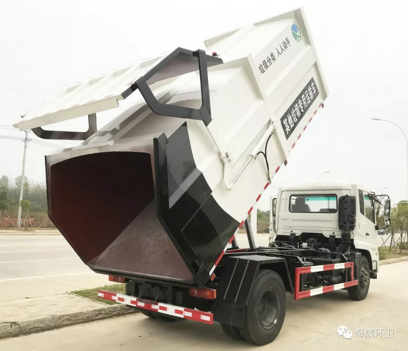 對(duì)接式垃圾車主要用于城鄉(xiāng)垃圾壓縮站的垃圾清運(yùn)。