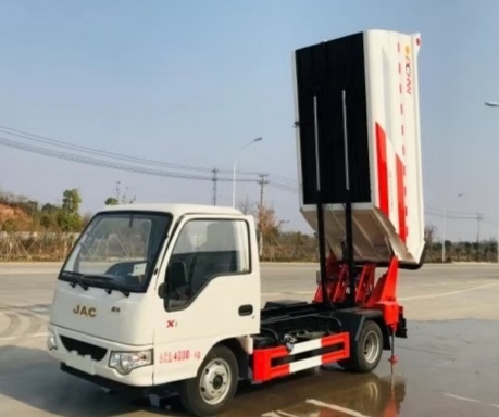 以往常見的自裝卸式垃圾車一般都是側(cè)掛桶帶箱體舉升。后高位翻轉(zhuǎn)的自裝卸式垃圾車最近幾年在垃圾分類/無滴漏等要求下開始逐步火爆。該車為后掛桶結(jié)構(gòu),自裝自卸。其"后高位翻轉(zhuǎn)"有兩個(gè)方面的含義,首先是垃圾桶高位翻轉(zhuǎn):垃圾桶掛上后被提升機(jī)構(gòu)水平端至箱體最高位置,然后翻轉(zhuǎn)將桶內(nèi)垃圾倒入垃圾箱內(nèi)。第二個(gè)也是最有特色的含義就是垃圾車的車廂的傾倒卸料,也是從車廂尾部高位為軸開始翻轉(zhuǎn)傾倒。因?yàn)檐噹麨榇徒Y(jié)構(gòu),車廂沒有后門,全密封,不泄露,所以從高位翻轉(zhuǎn)傾倒。確保了整個(gè)收集/運(yùn)輸過程無滴漏,非常適合收集轉(zhuǎn)運(yùn)含水量較多的生活垃圾或者廚余垃圾,亦可作為餐廚垃圾車轉(zhuǎn)運(yùn)餐廚垃圾。