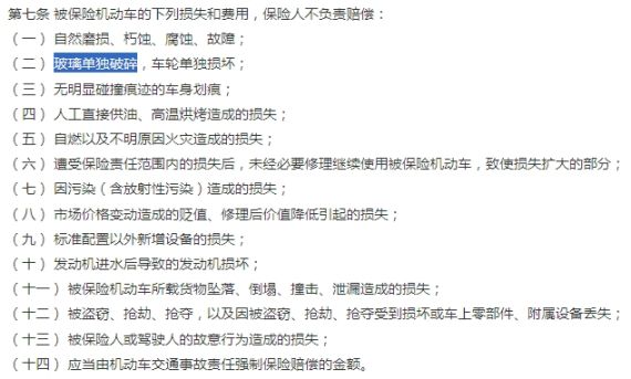 玻璃單獨(dú)破損的情況車損險(xiǎn)不予賠付