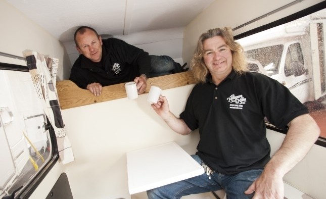 房車的車廂部分后開門,車身周圍都有車窗確保采光。