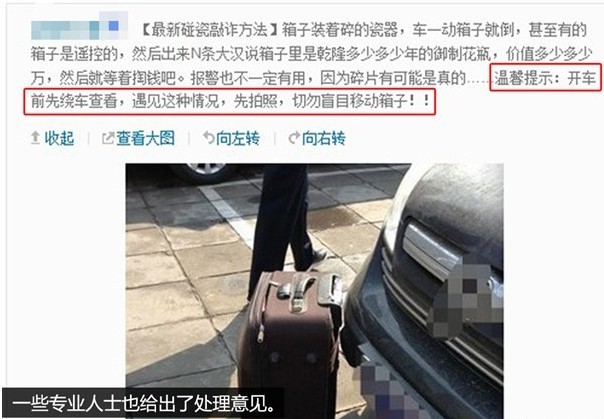 這是發(fā)生在今年年初的一個(gè)事件,一位網(wǎng)友在準(zhǔn)備駕車外出時(shí)發(fā)現(xiàn)車前放置了一個(gè)行李箱,周圍也沒有人認(rèn)領(lǐng),車主多了個(gè)心眼先拍照留證據(jù)。此時(shí)旁邊走來一名男士,表示自己箱子擋住了該網(wǎng)友的車,表示歉意后將箱子拎走。